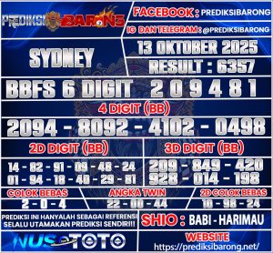 Oleh karena itu tanpa menunggu lama inilah Prediksi SYDNEY Senin tanggal 13 Oktober 2025 Dari Prediksi Barong :