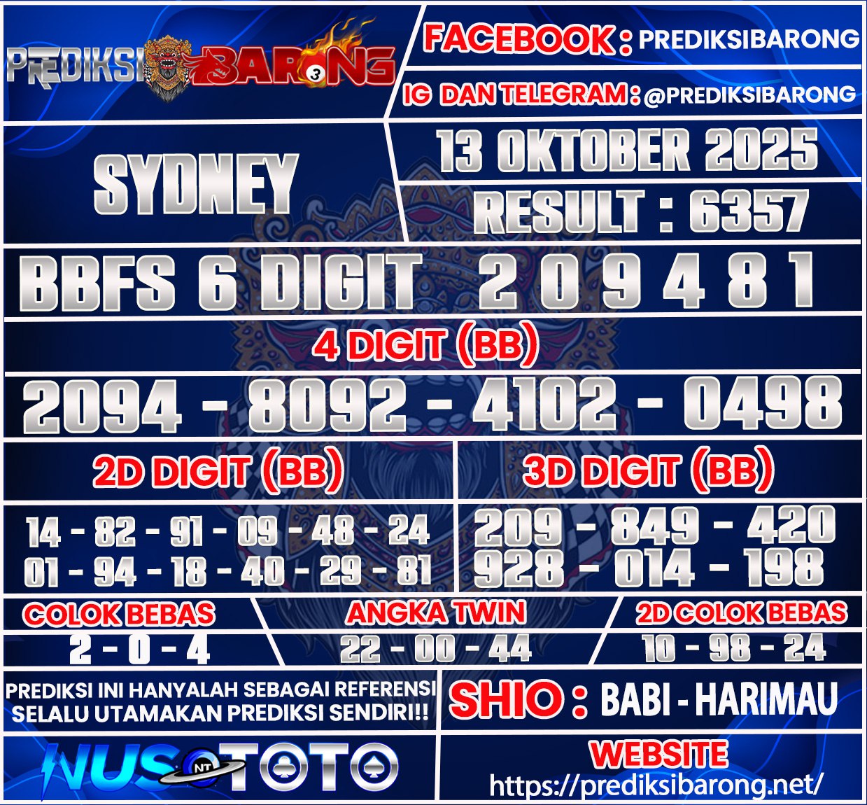 REDIKSI TOGEL SYDNEY 13 OKTOBER 2025