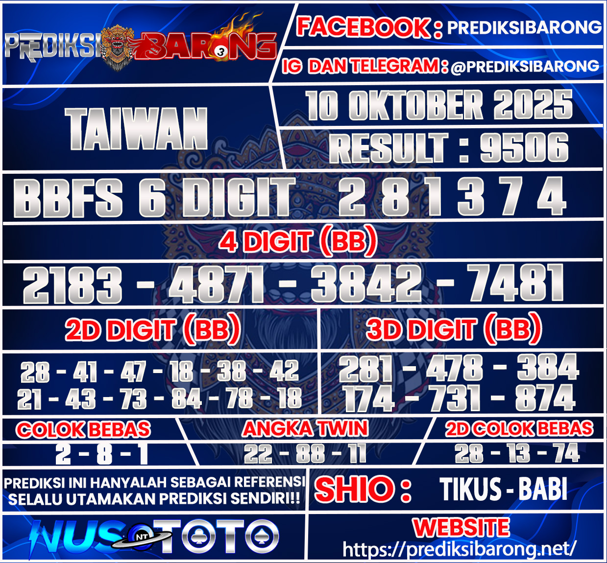 PREDIKSI TOGEL TAIWAN 10 OKTOBER 2025