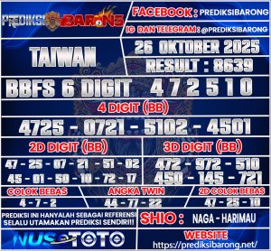 PREDIKSI TOGEL TAIWAN 25 OKTOBER 2025