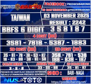 PREDIKSI TOGEL TAIWAN 01 NOVEMBER 2025