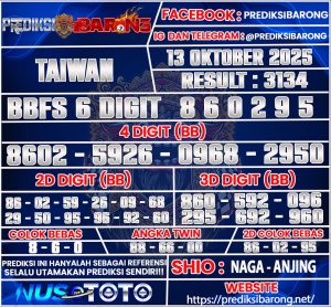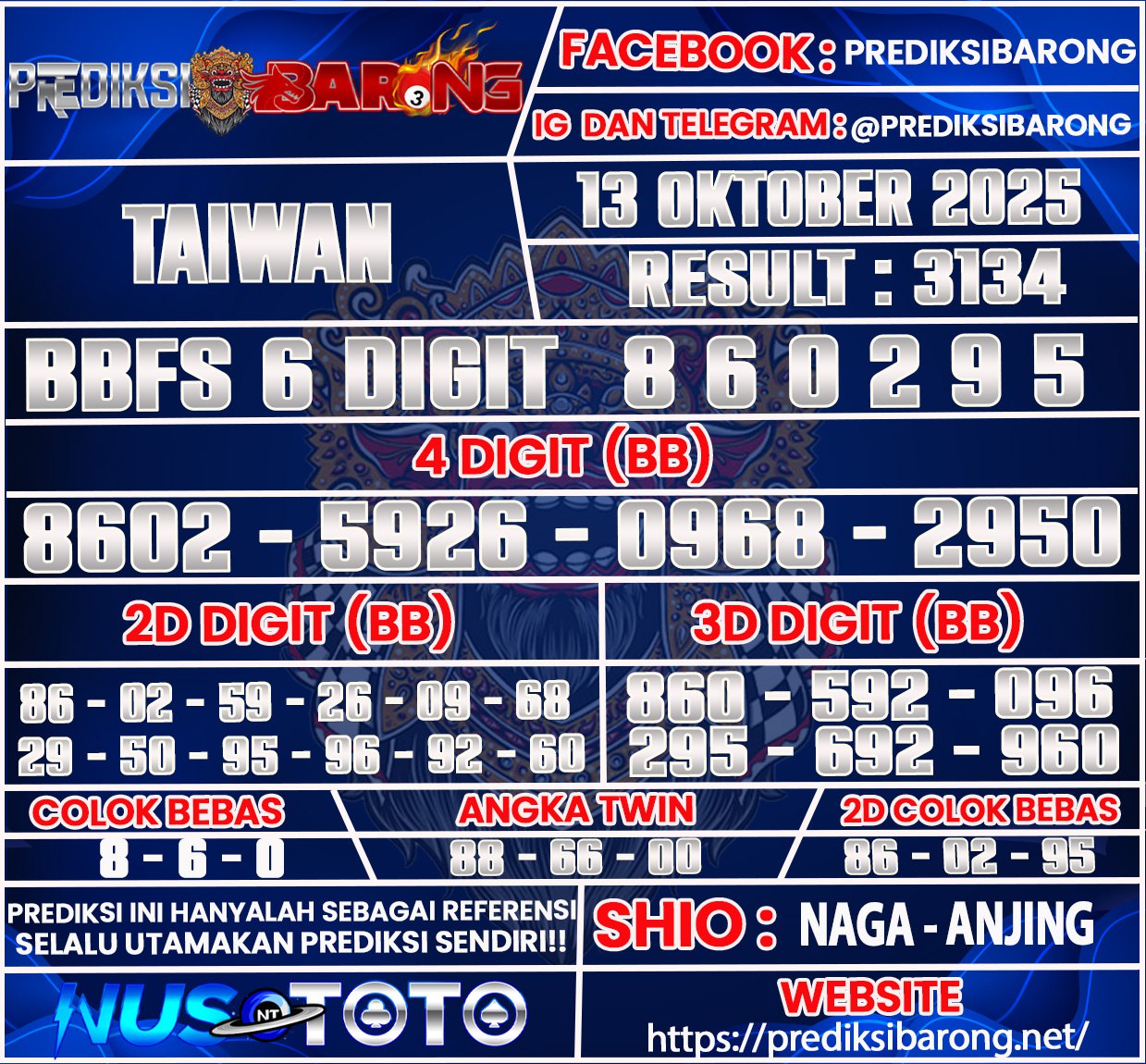 PREDIKSI TOGEL TAIWAN 13 OKTOBER 2025