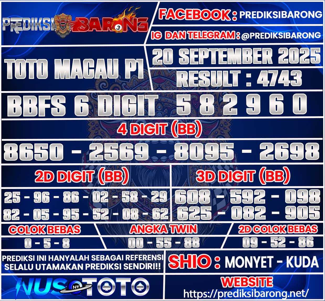 Prediksi Barong » Prediksi TOTO MACAU P1 Sabtu 20 September2025