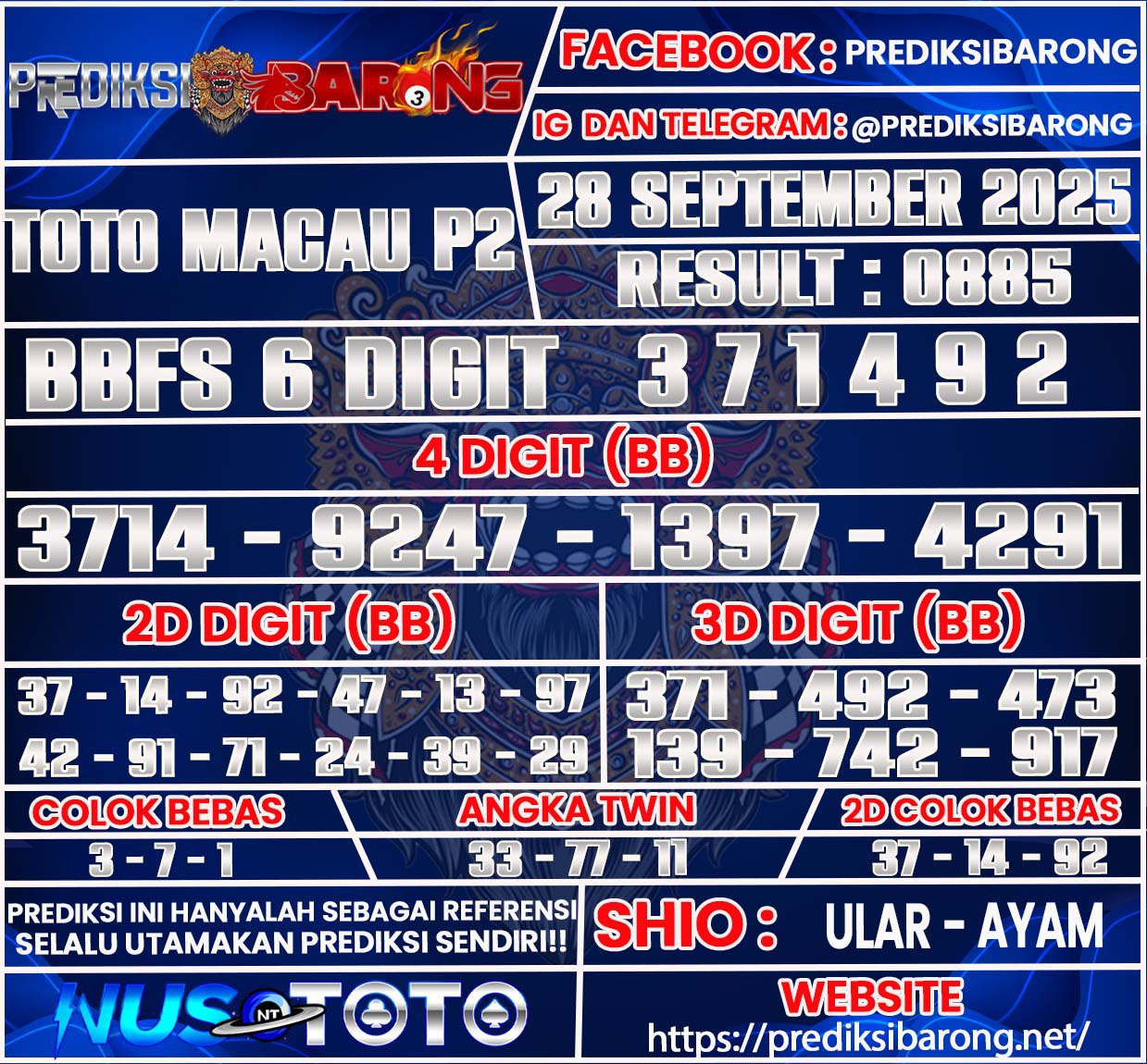 PREDIKSI TOTO MACAU P2 Minggu 28 SEPTEMBER 2025
