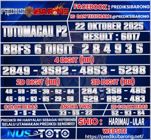 PREDIKSI TOGEL TOTOMACAU P2 22 OKTOBER 2025