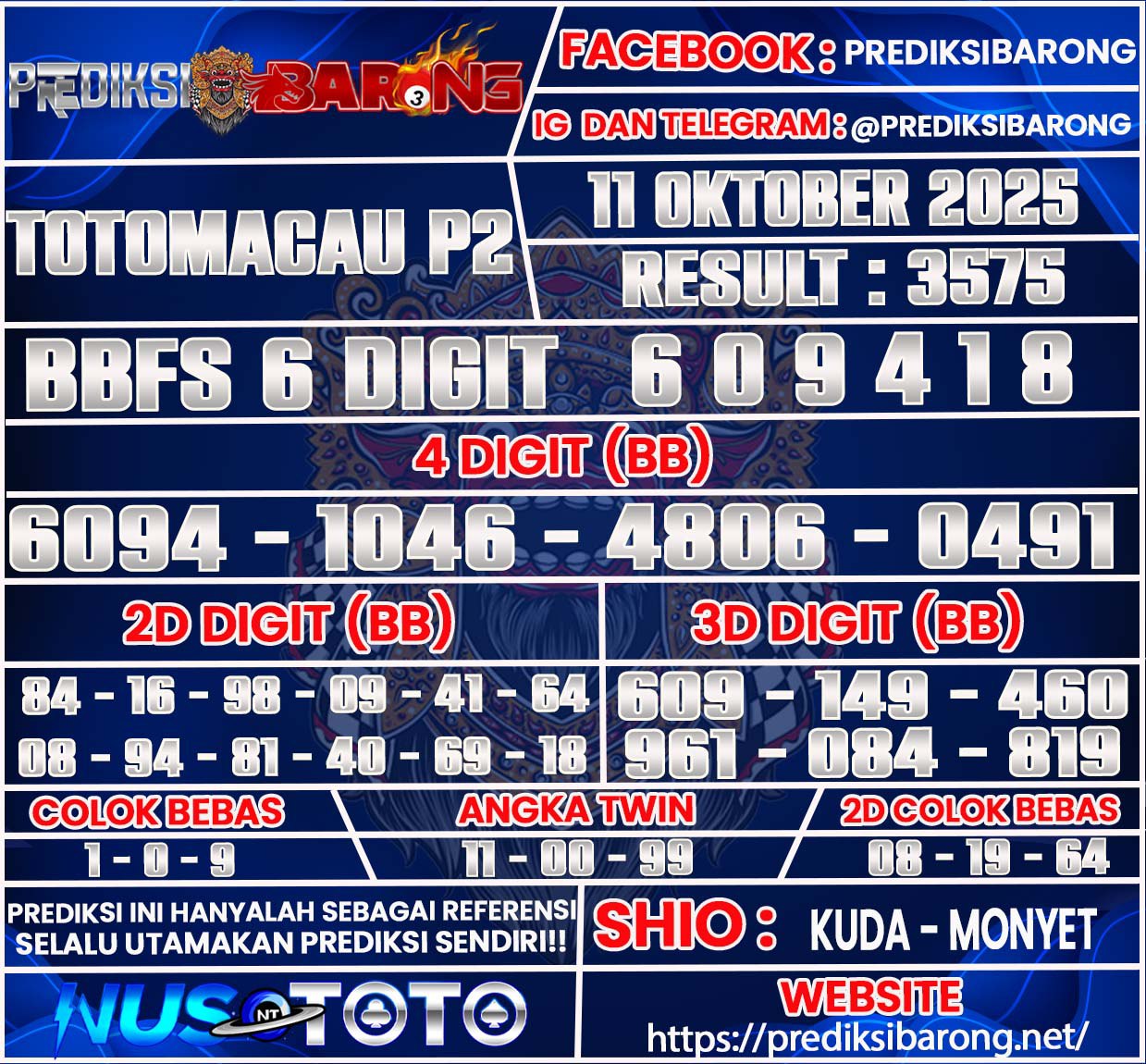 PREDIKSI TOTO MACAU P2 Sabtu 11 Oktober 2025