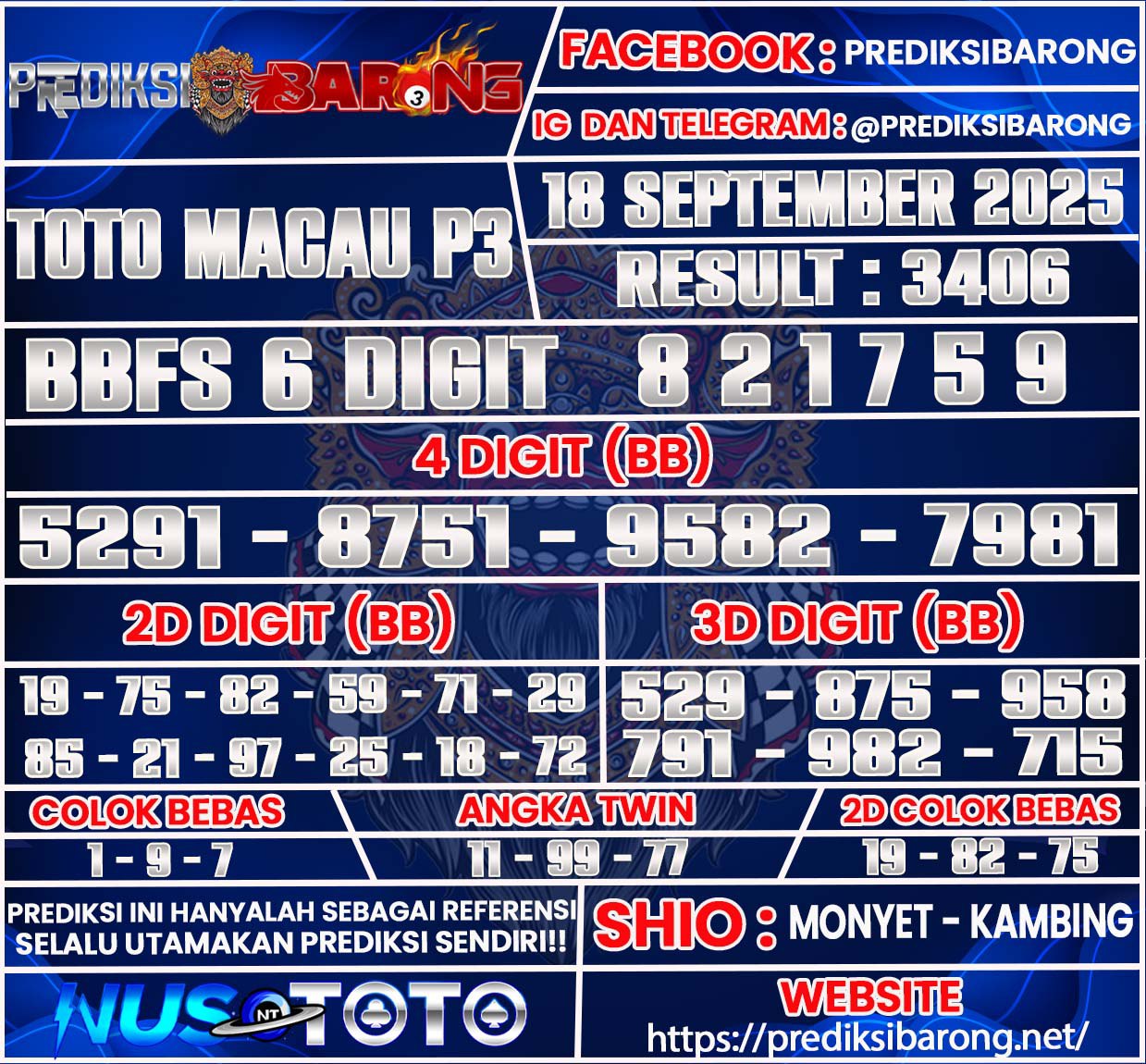 Prediksi Barong » Prediksi TOTO MACAU P3 Kamis 18 September 2025