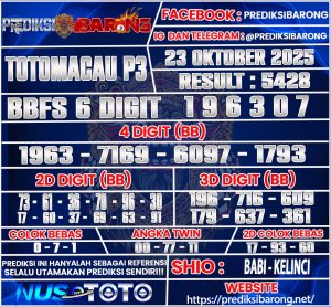 PREDIKSI TOGEL TOTOMACAU P3 23 OKTOBER 2025
