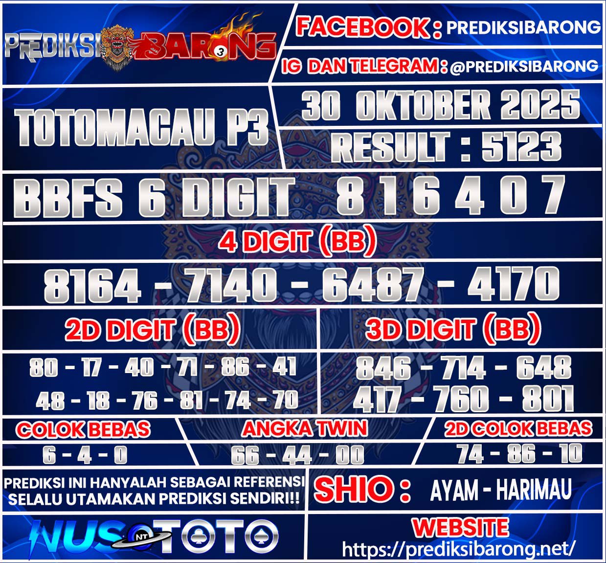 REDIKSI TOGEL TOTOMACAU P3 30 OKTOBER 2025