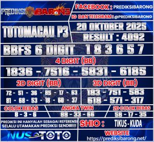 PREDIKSI TOGEL TOTOMACAU P3 20 OKTOBER 2025