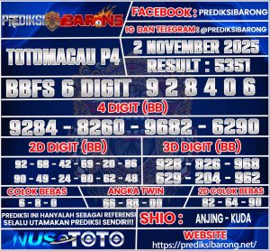 PREDIKSI TOGEL TOTOMACAU P4 2 NOVEMBER 2025