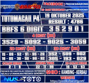 PREDIKSI TOGEL TOTOMACAU P4 19 OKTOBER 2025