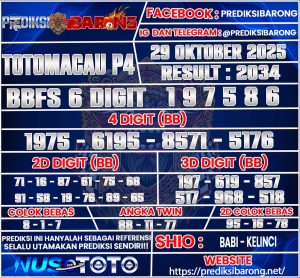 REDIKSI TOGEL TOTOMACAU P4 29 OKTOBER 2025