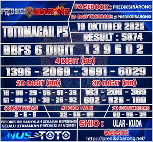 PREDIKSI TOGEL TOTOMACAU P5 19 OKTOBER 2025