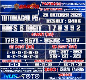 PREDIKSI TOGEL TOTOMACAU P5 26 OKTOBER 2025