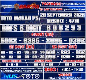 Oleh karena itu tanpa menunggu lama inilah Prediksi Toto Macau Minggu Tanggal 28 September 2025 Dari Prediksi Barong :