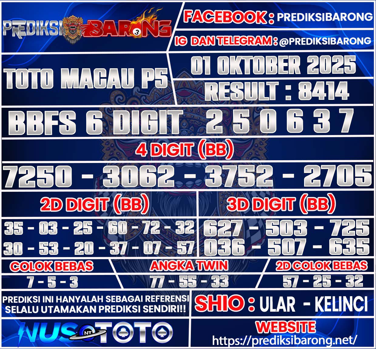 PREDIKSI TOGEL TOTOMACAU P5 01 OKTOBER 2025