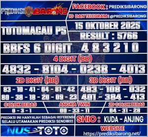 PREDIKSI TOGEL TOTOMACAU P5 15 OKTOBER 2025