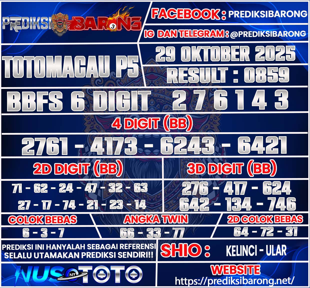 REDIKSI TOGEL TOTOMACAU P5 29 OKTOBER 2025