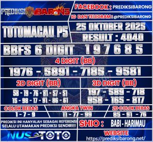 PREDIKSI TOGEL TOTOMACAU P5 25 OKTOBER 2025