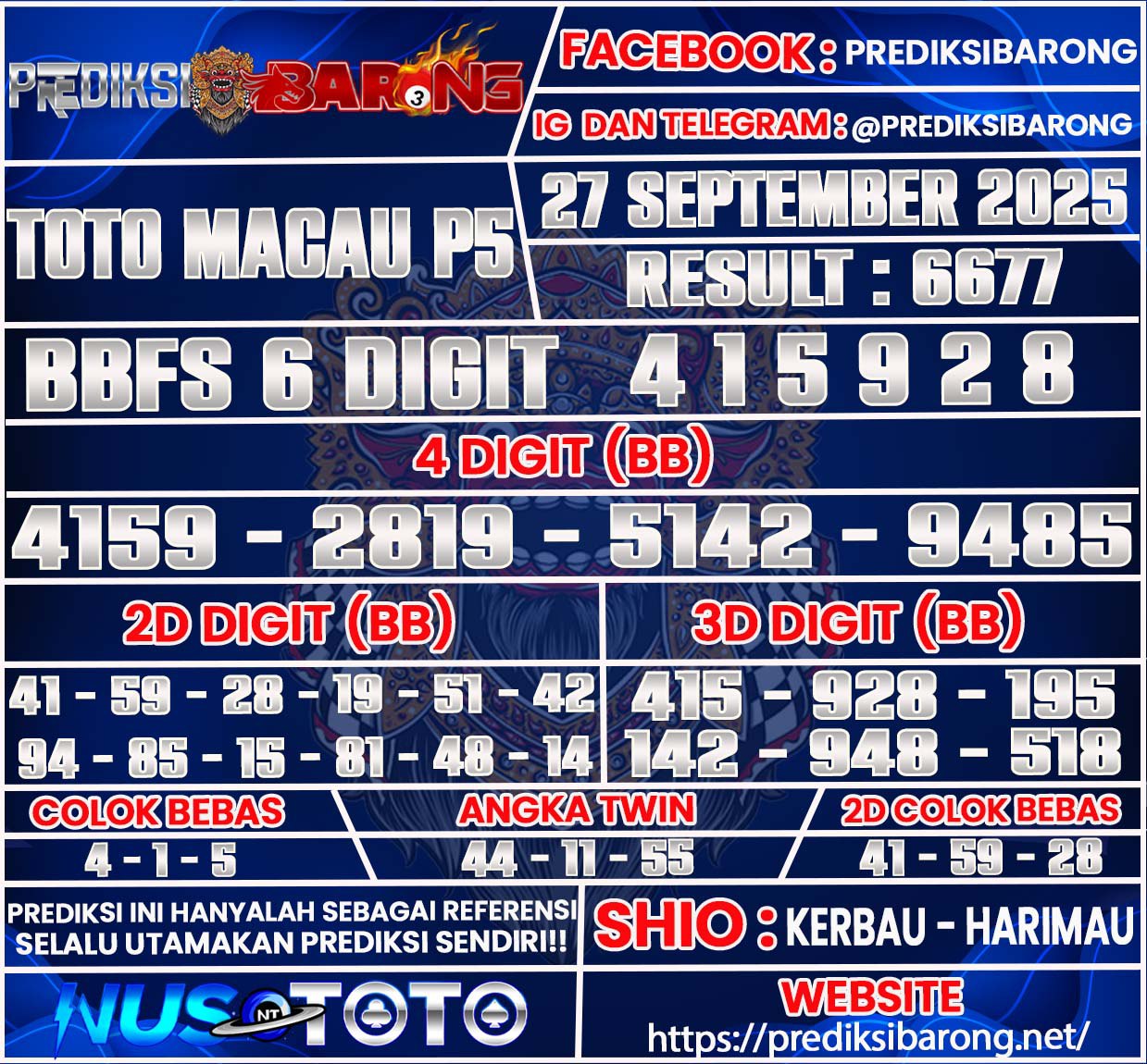 PREDIKSI TOTO MACAU P5 Sabtu 27 SEPTEMBER 2025