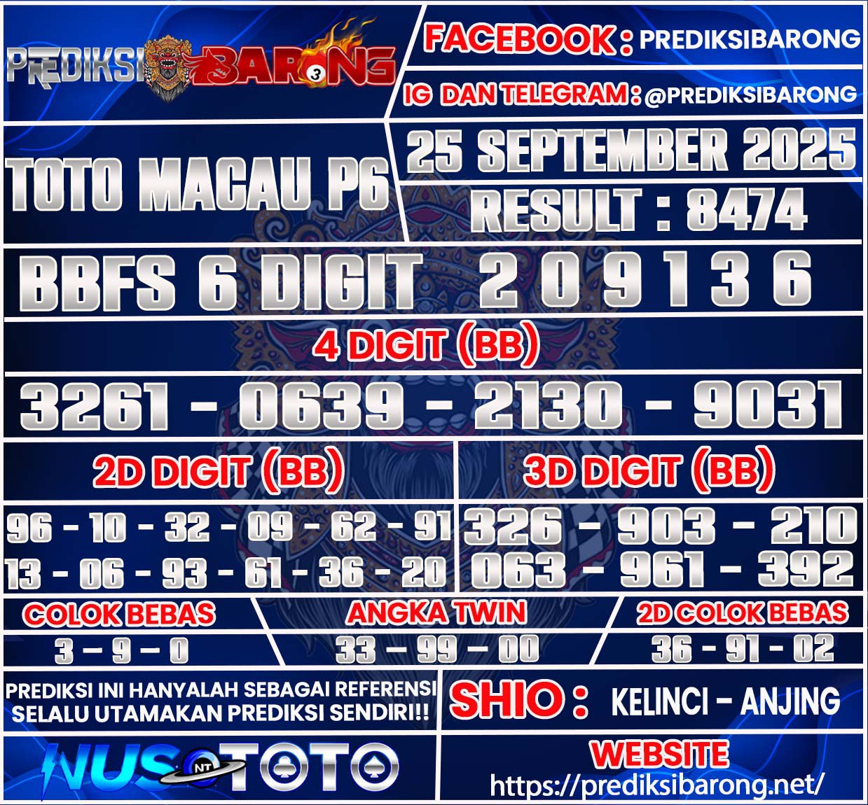 Prediksi Barong » Prediksi TOTO MACAU P6 Hari Kamis 25 September 2025