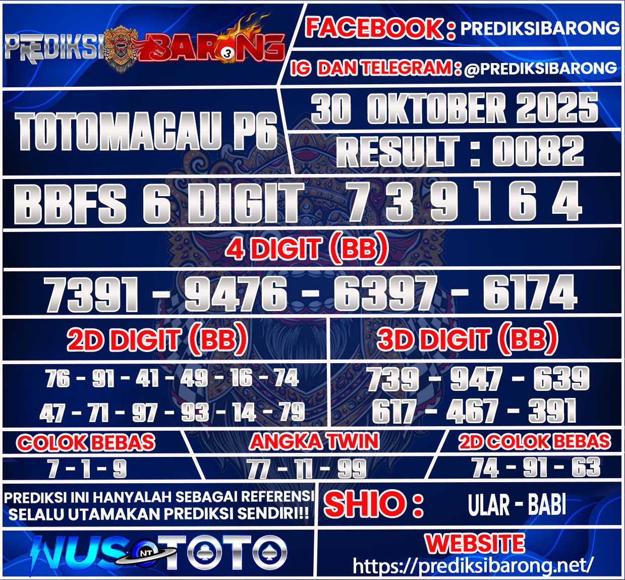 REDIKSI TOGEL TOTOMACAU P6 30 OKTOBER 2025