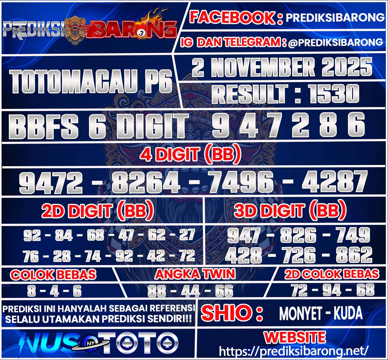PREDIKSI TOTO MACAU P6 Minggu 02 November 2025