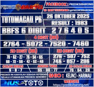 PREDIKSI TOGEL TOTOMACAU P6 26 OKTOBER 2025