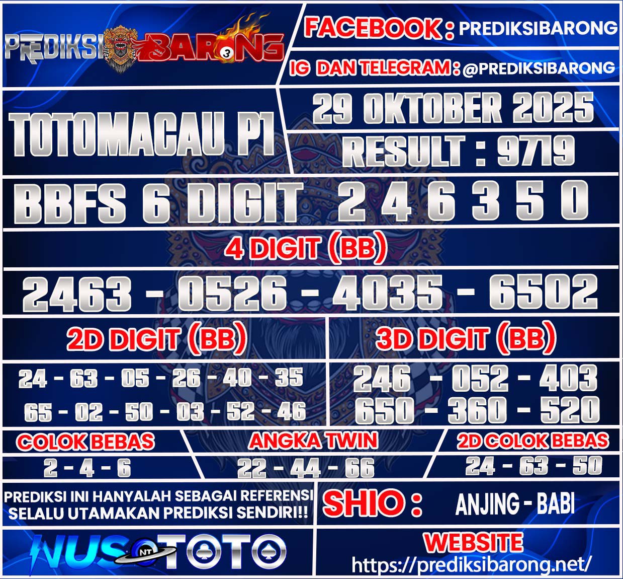 PREDIKSI TOTO MACAU P1 Rabu 29 OKTOBER 2025