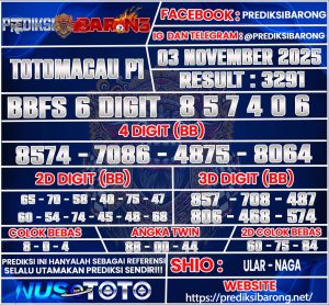 PREDIKSI TOGEL TOTOMACAU P1 03 NOVEMBER 2025