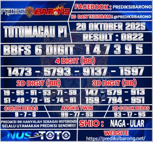 PREDIKSI TOGEL TOTOMACAU P1 20 OKTOBER 2025